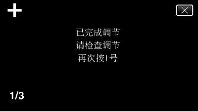 如果轻按调节屏幕上“+”标记以外的位置,就会出错。 在此情况下,从第4步开始再试。