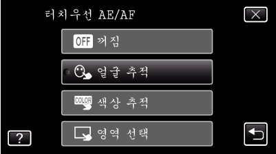 - 주위의 밝기가 변했을 때 - “얼굴 추적”을 설정할 때 급속으로 카메라를 가로 또는 세로로 움직이면 피사체를 잃어 버릴 수도 있습니다. 등록되지 않은 얼굴은 다시 트래킹을 할 수 없습니다. 피사체를 다시 트래킹하려면 그 위에 손끝을 댑니다.
