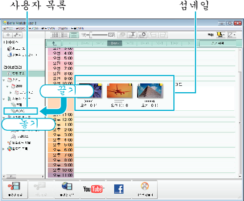 그 날에 녹화한 파일의 섬네일 화면이 표시됩니다.
