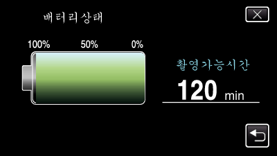 내장 메모리와 SD 카드의 잔여 비디오 녹화 시간은 물론 잔여 배터리 전력도 확인할 수 있습니다.