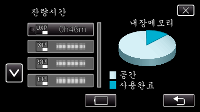 - 잔여 시간 녹화 표시에서도 원하는 비디오 화질에 손끝을 대면 변경할 수 있습니다.