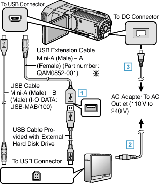 - When connecting to the external hard disk drive, use a USB cable with Mini-A (Male) – B (Male) connectors.
