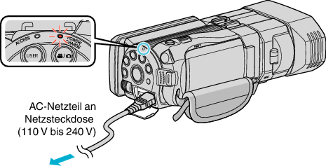 Achten Sie darauf, das mitgelieferte JVC AC-Netzteil zu nutzen.