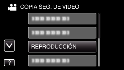 Pulse “REPRODUCCIÓN” en el menú COPIA DE SEGURIDAD.