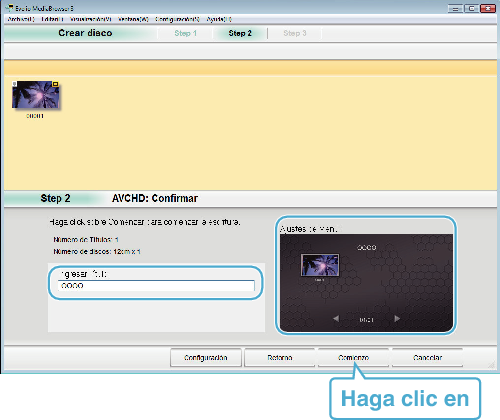 - Cuando se crea un disco con imágenes en 3D, es posible que existan ciertas limitaciones debido al formato de grabación. Para obtener detalles, consulte el archivo de ayuda del software Everio MediaBrowser 3D provisto.