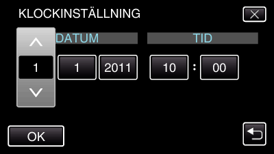 Rör vid ∧ eller ∧ för att ställa in år, månad, dag, timme och minut.