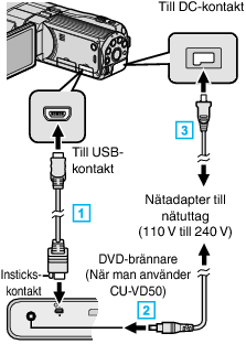 Anslut DVD-brännarens nätadapter.