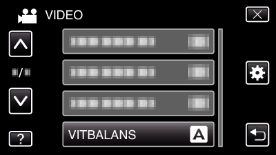 Tryck på ∧ eller ∨ för att gå uppåt eller nedåt för att välja.