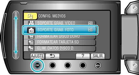 Seleccione “SOPORTE GRAB. FOTO” y presione OK .