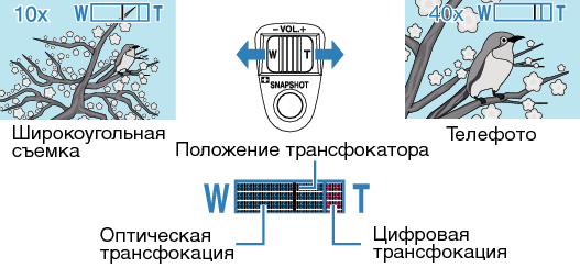 - При использовании цифровой трансфокации, изображение становится зернистым, т.к. оно увеличивается цифровым способом.