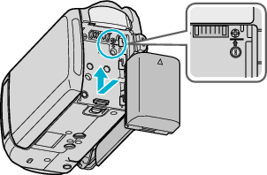 Подвиньте рычажок высвобождения батареи, чтобы снять аккумуляторный блок с аппарат.