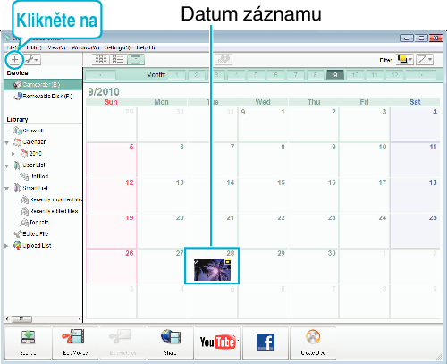 Zobrazí se náhledy souborů zaznamenaných ve zvolený den.