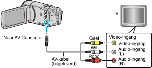 Als de bijgeleverde AV-kabel wordt verbonden met de AV-connector, kunnen de video’s worden afgespeeld op een TV.