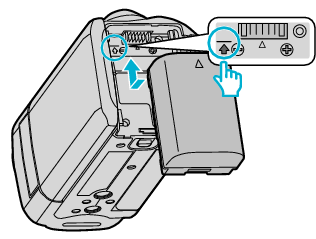 Aby wyjąć akumulator z urządzenia, przesuń dźwignię otwierania komory akumulatora.
