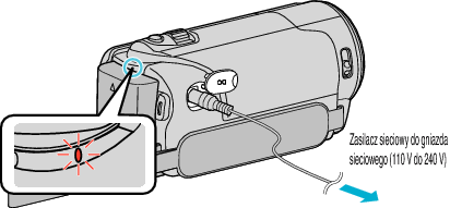 - Aby nagrywać przez dłuższy czas w pomieszczeniu, można podłączyć tego urządzenia do zasilacza sieciowego.