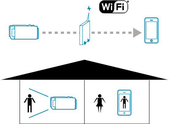 Ellenőrizheti a kamera képét egy okostelefonról (vagy számítógépről) az otthoni hozzáférési pont és egy vezetékmentes LAN router segítségével.