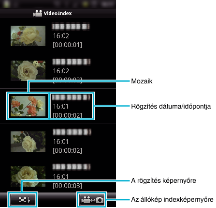 Videó indexképernyő