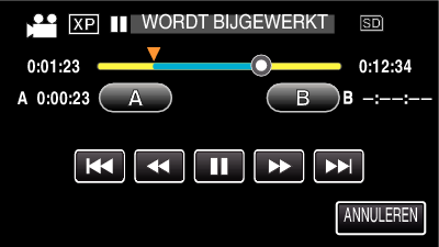 Tik om het start- of eindpunt te resetten op ”A” of ”B” in de gewenste scène (positie).
