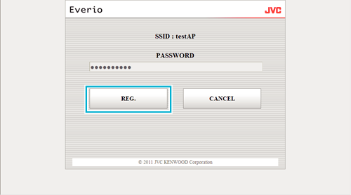 “SSID„, “TYPE OF SECURITY„ ve “PASSWORD„ öğelerini girip “REG.„ öğesini tıklatın.