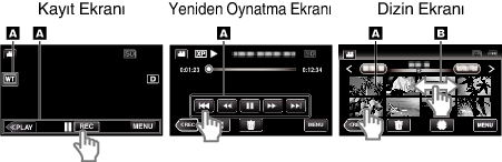 Dokunmatik ekranda görüntülenen düğmeye (ikon) veya küçük resme (dosyaya) seçim yapmak için dokunun.