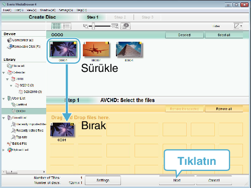 Diske kopyalanacak dosyaları sırayla seçin.