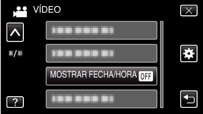 Ajusta si se desea mostrar la fecha y hora de grabación durante la reproducción de vídeo.