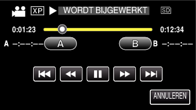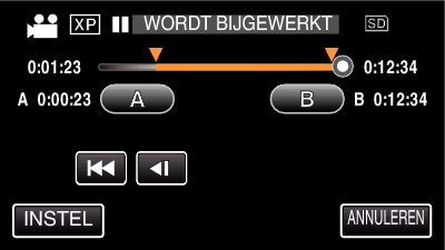 Tik om het start- of eindpunt te resetten op ”A” of ”B” in de gewenste scène (positie).