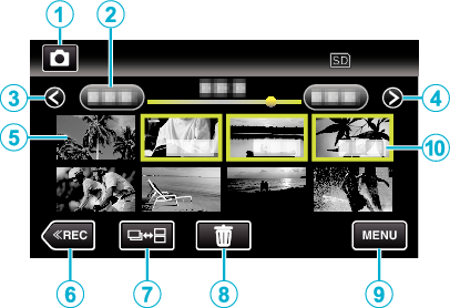 Geeft het indexscherm weer (miniatuurweergave) om te wissen |
