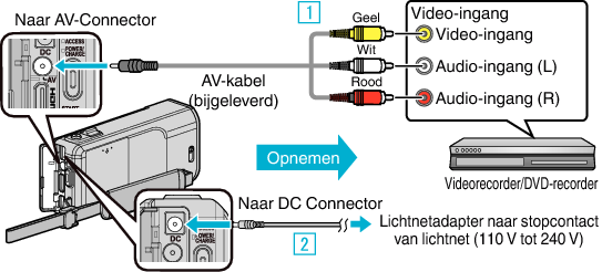 U kunt video’s dubben in standaardkwaliteit door verbinding te maken met een videorecorder.
