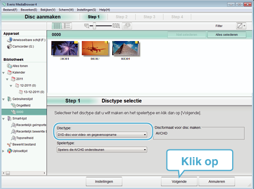 - De volgende disktypen kunnen worden gebruikt op de bijgeleverde software Everio MediaBrowser 4.