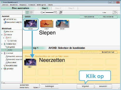 Selecteer de bestanden die geordend naar de disk moeten worden gekopieerd.