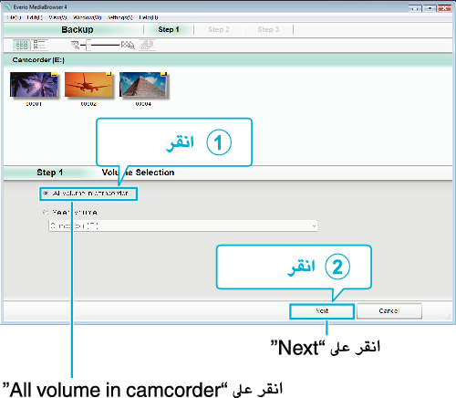 يبدأ تشغيل برنامج Everio MediaBrowser 4 المرفق على جهاز الكمبيوتر.