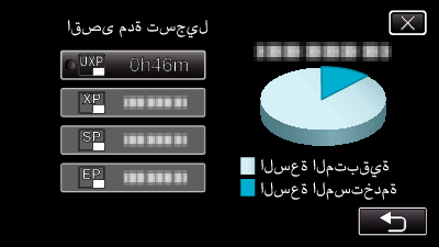- يمكنك التغيير إلى جودة الفيديو المطلوبة عن طريق الضغط عليه من عرض وقت التسجيل المتبقي.