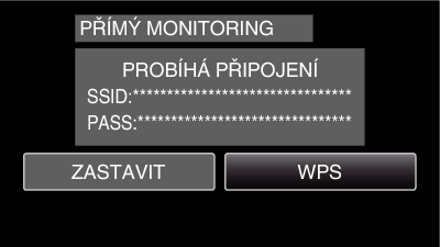 Ověřte SSID a PASS zobrazené na obrazovce kamery a poté připojte smartphone (nebo počítač).