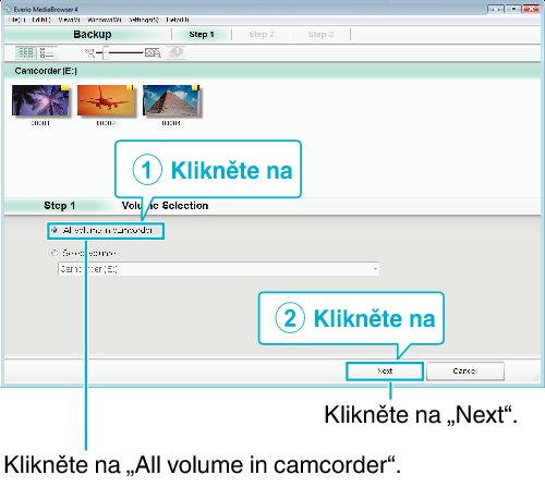 Dodaný software Everio MediaBrowser 4 se na počítači sám spustí.