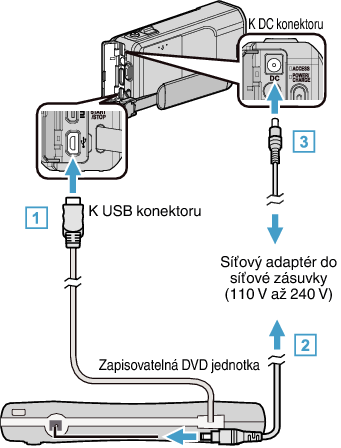 Zapojte síťový adaptér zapisovatelné DVD jednotky.