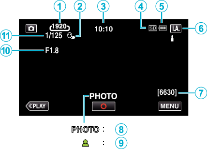 تظهر ”PHOTO“ عند التقاط صورة ساكنة. |
