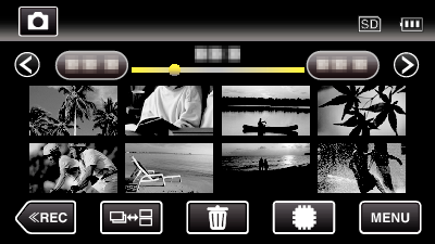 يمكنك تحديد مقاطع الفيديو المُسجلة أو الصور الساكنة وتشغيلها من شاشة الفهرس (عرض مُصغر).