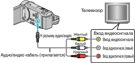 Воспроизведение > Подключение к телевизору и просмотр > Подключение с помощью разъема AV
