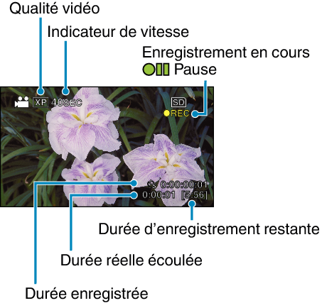Affiche la durée réelle écoulée depuis le début de l’enregistrement. |