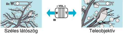 Használja a W (széles látószög) végső állást a szélesebb látószögű felvételkészítéshez.