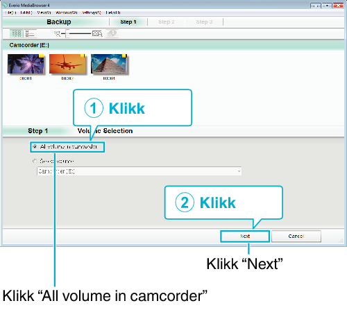 Før du utfører en sikkerhetskopiering, må du sette i SD-kortet der videoer og stillbilder er lagret på denne enheten.