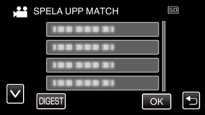 Matchuppspelning är en funktion för att spela upp målscener och/eller markerade scener som spelats in med smartphone-applikationen Everio sync. 2.