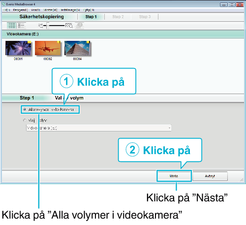 Före säkerhetskopiering ska du sätta in SD-kortet med denna enhet lagrade videor och stillbilder.