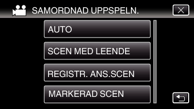Välj typ av uppspelning av sammandrag bland de följande. När ”AUTO” har valts genomförs uppspelning genom att videon kortas ner till förinställd tidslängd.