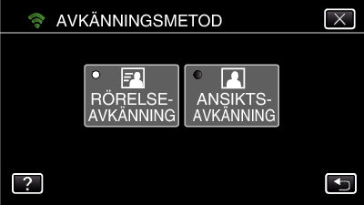 Tryck på ”RÖRELSEAVKÄNNING” eller ”ANSIKTSAVKÄNNING” för att välja.