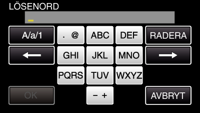 Tryck på skärmens tangentbord för att mata in tecken. Tecknet ändras varje gång man trycker.