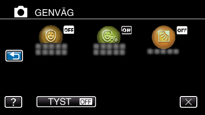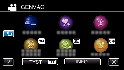 Man kan konfigurera olika inställningar av rekommenderade funktioner för videoinspelnings- och stillbildsinspelningsläget via genvägsmenyn.