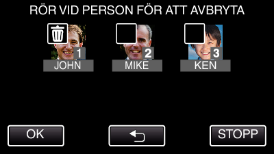 Man kan avbryta (radera) den ansiktsinformation som registrerats.
