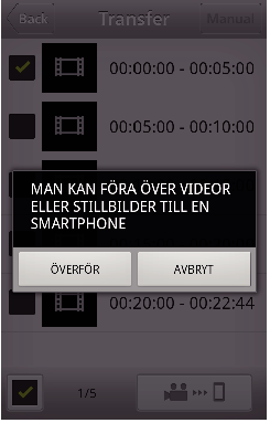 ) till de stillbilder som ska överföras och tryck på markeringsikonen för överföring (